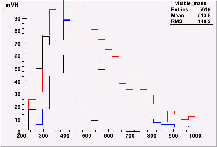 比較プロットを作成した。青がttw、赤がWWWjj、黒が信号。現時点ではttwは1/10、WWWjjは0.5のファクターで6atbarn-1。信号はKfactorをかけた。170GeV。