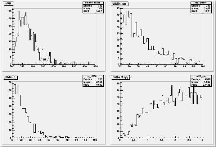 SLHCの物理。数が少いので、同種2レプトントリガーの使えるHー>WWをふたつ捕まえるチャンネルを調べる。 とりあえずHー>lnuqqのイベントを20kとって来てAnalysisSkeltonをうごかした。