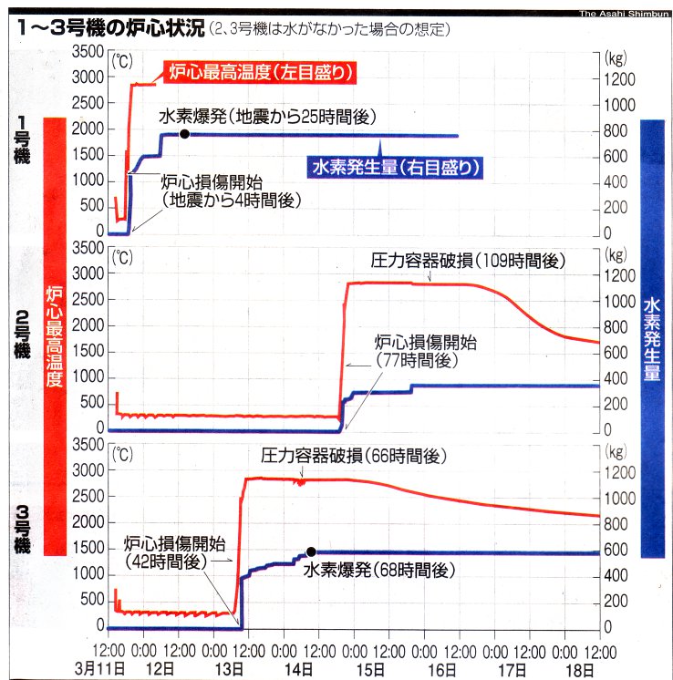 新聞記事とECCSの図からECCSにはタービンが付いていて発電できるとなっている。なるほど2号機では冷却が一番最後まで機能している。水素爆発が起きなかったわけがこれでわかる。なぜこの機能が3日間、運転してから停止したのかは不明。