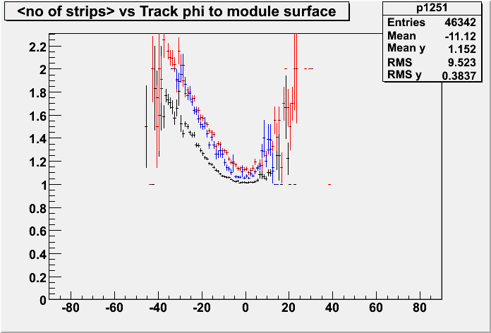 として、ミニマムバイアスでイベントの作成をやろうとしている。 Batley氏からもらったAnalysisが動かなかったので、山下くんのInDetSoftwareTutorialでミニマムバイアスのプロットを作成した。赤が宇宙線データ、黒がそのMC、青がFull simulation.